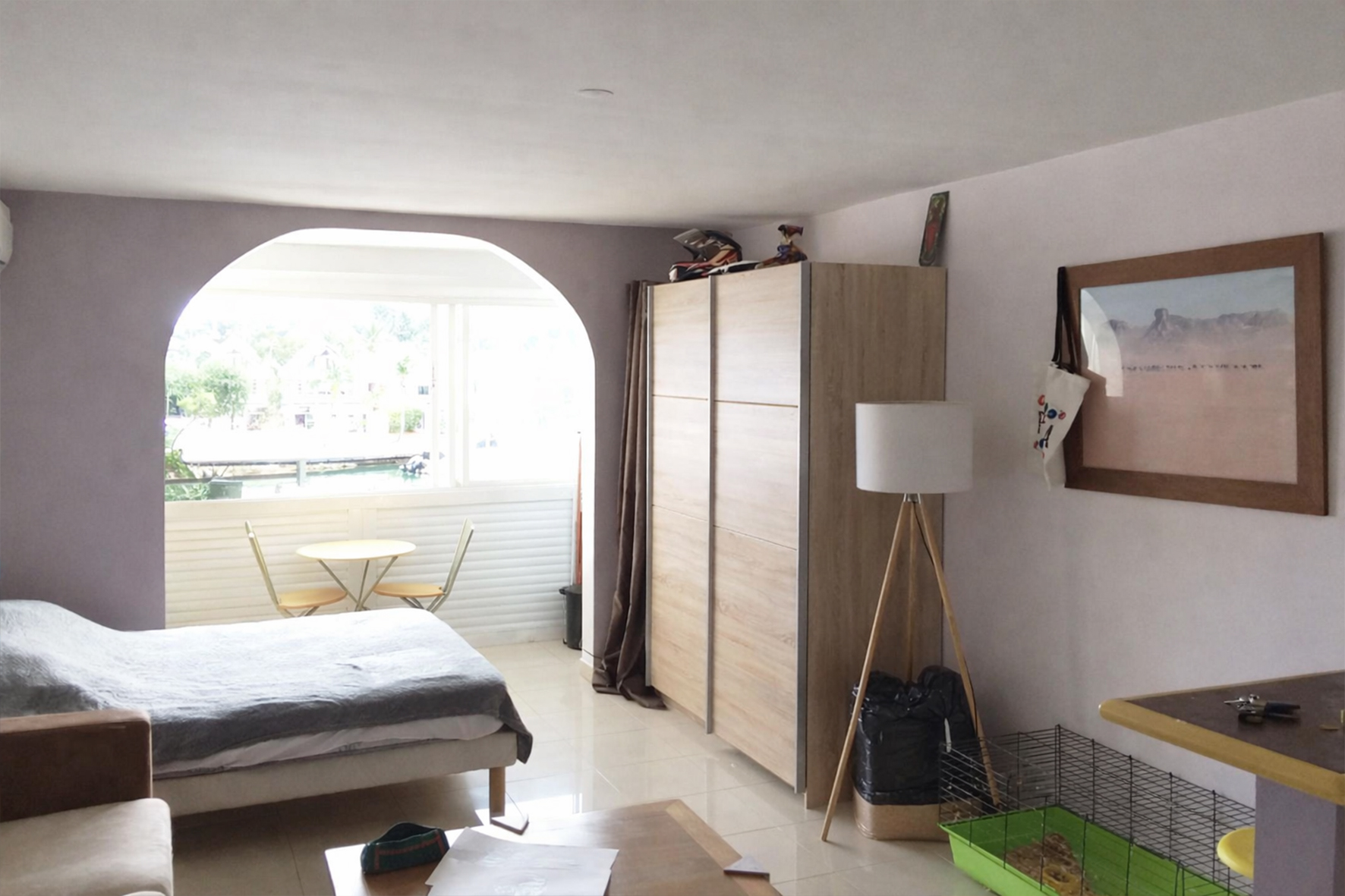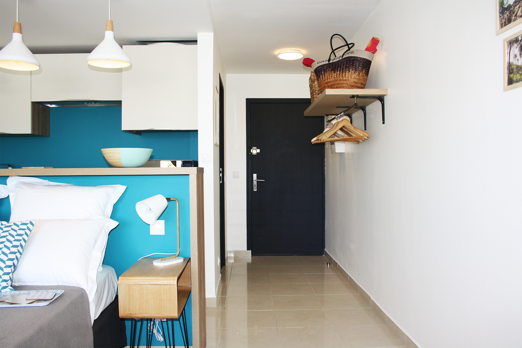 À la Marina du Gosier, ce logement locatif a été pensé comme un espace compact et lumineux, à l’esthétique sobre et contemporaine. L’agencement optimise les volumes, structure les usages et crée une ambiance à la fois douce, fonctionnelle et accueillante. Un bien conçu avec simplicité et justesse, dans lequel chaque choix participe à l’équilibre général du lieu.